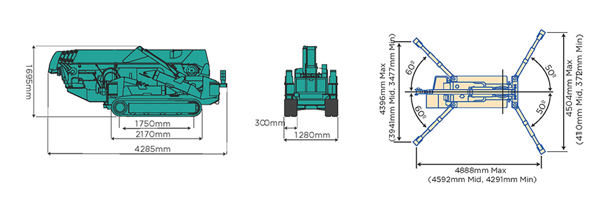 • 최대 인출폭 4888(전·후) x 4394(측면)